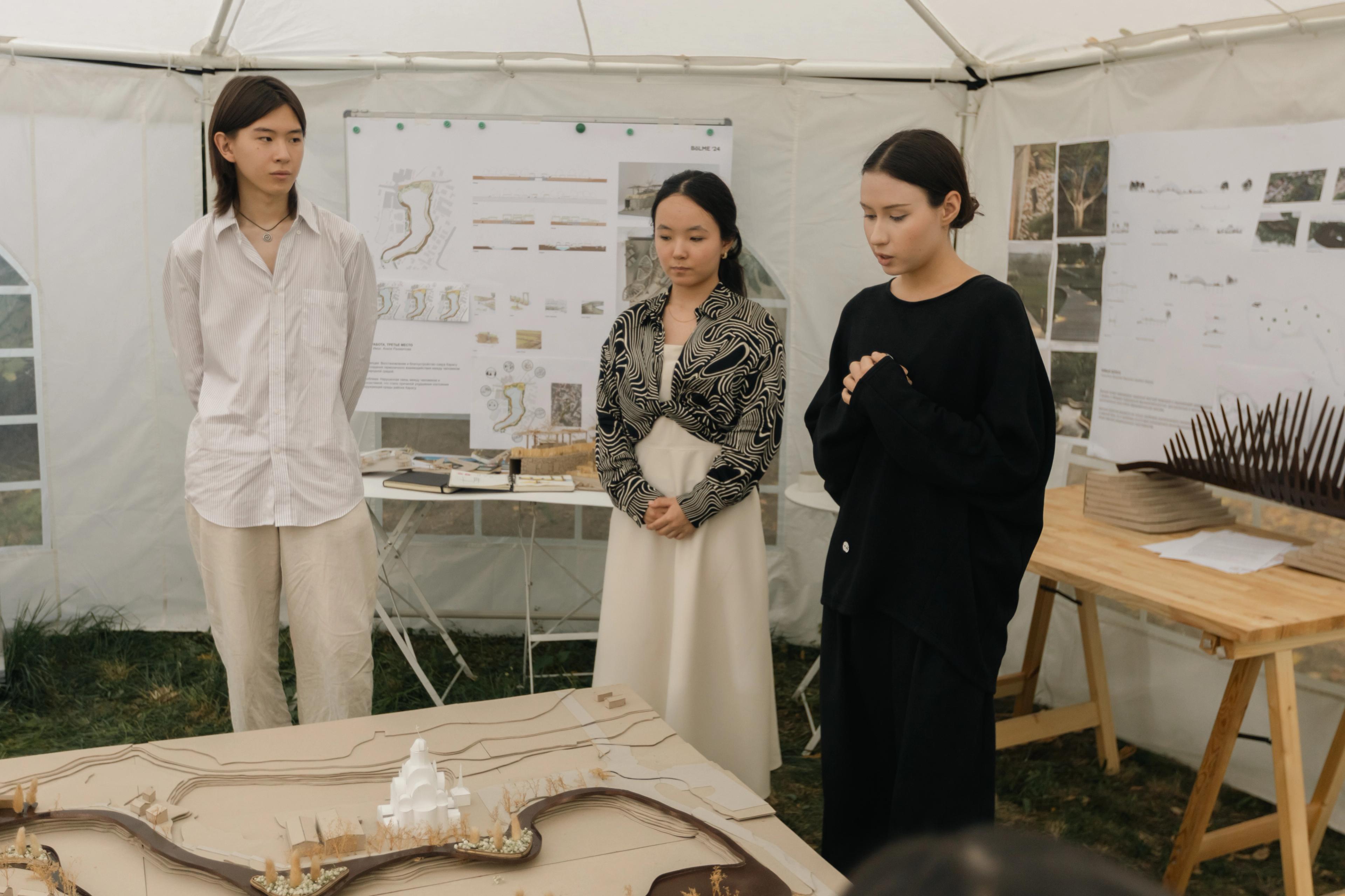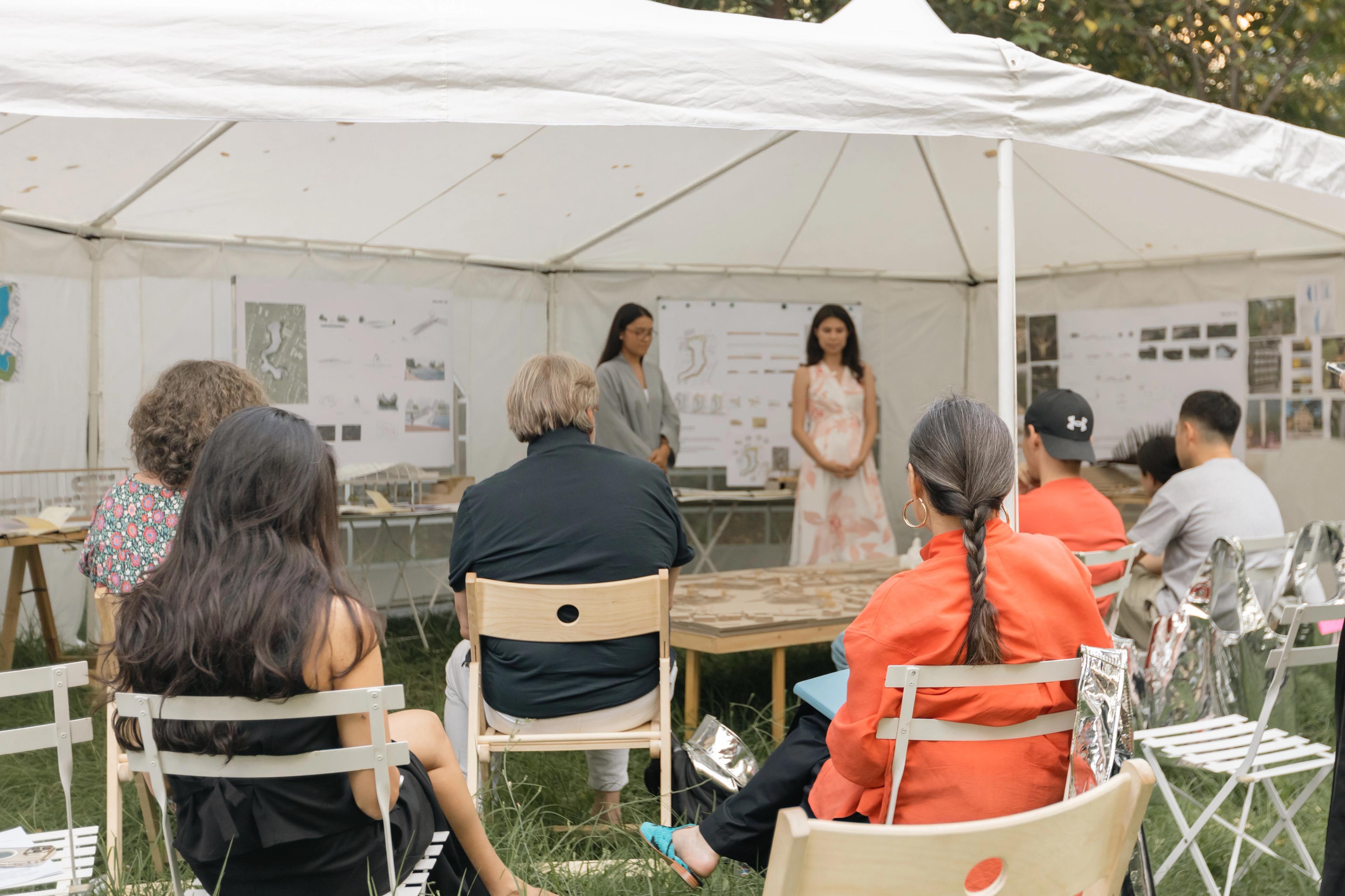 Қорытынды жобалар 4 адамнан тұратын кішігірім топтарға бөлініп, ұжымдық түрде орындалды. Қорытынды көрсетілімде жобалар эскиз, макет және кәсіби орта мен Қарасу жергілікті қауымдастығының алдында өтетін презентациядан тұрды.